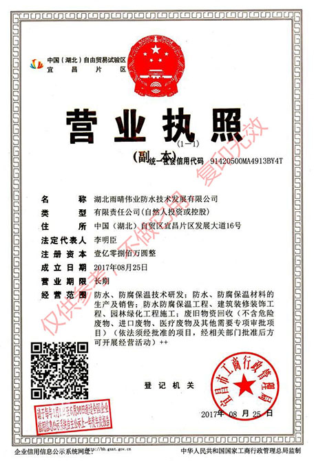 雨晴偉業(yè)在集團公司“致力卓越、見證未來”的強勢理念下,立志做到“雨晴偉業(yè),晴朗世界”;立志研發(fā)“別無我有,別有我優(yōu)”的優(yōu)質差異化產(chǎn)品;立志成為高品質防水系統(tǒng)引領者,為人類解除滲漏之苦,呵護人類安居生活!