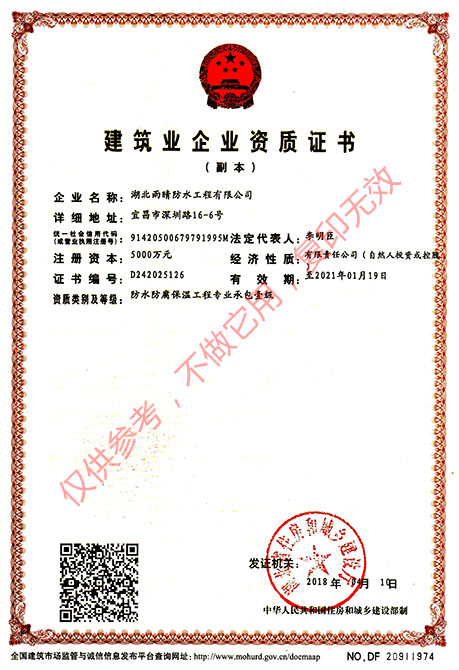 -國家防水防腐保溫工程專業(yè)承包壹級資質